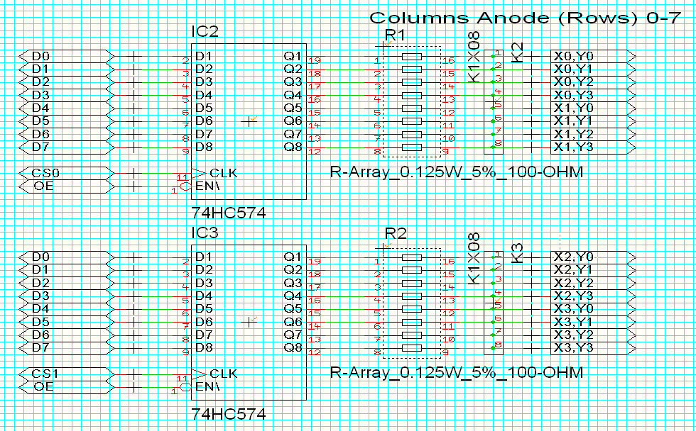 Mit (2x8) sechzehn Anschlüssen kann man eine Matrix realisieren